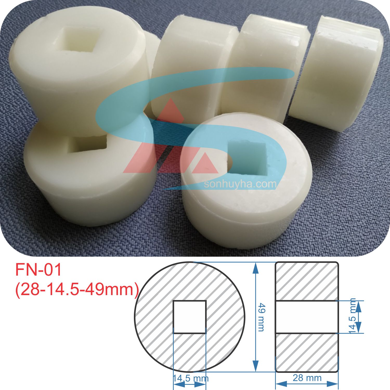 Quy cách : 28-14.5-49mm (Lỗ Vuông)