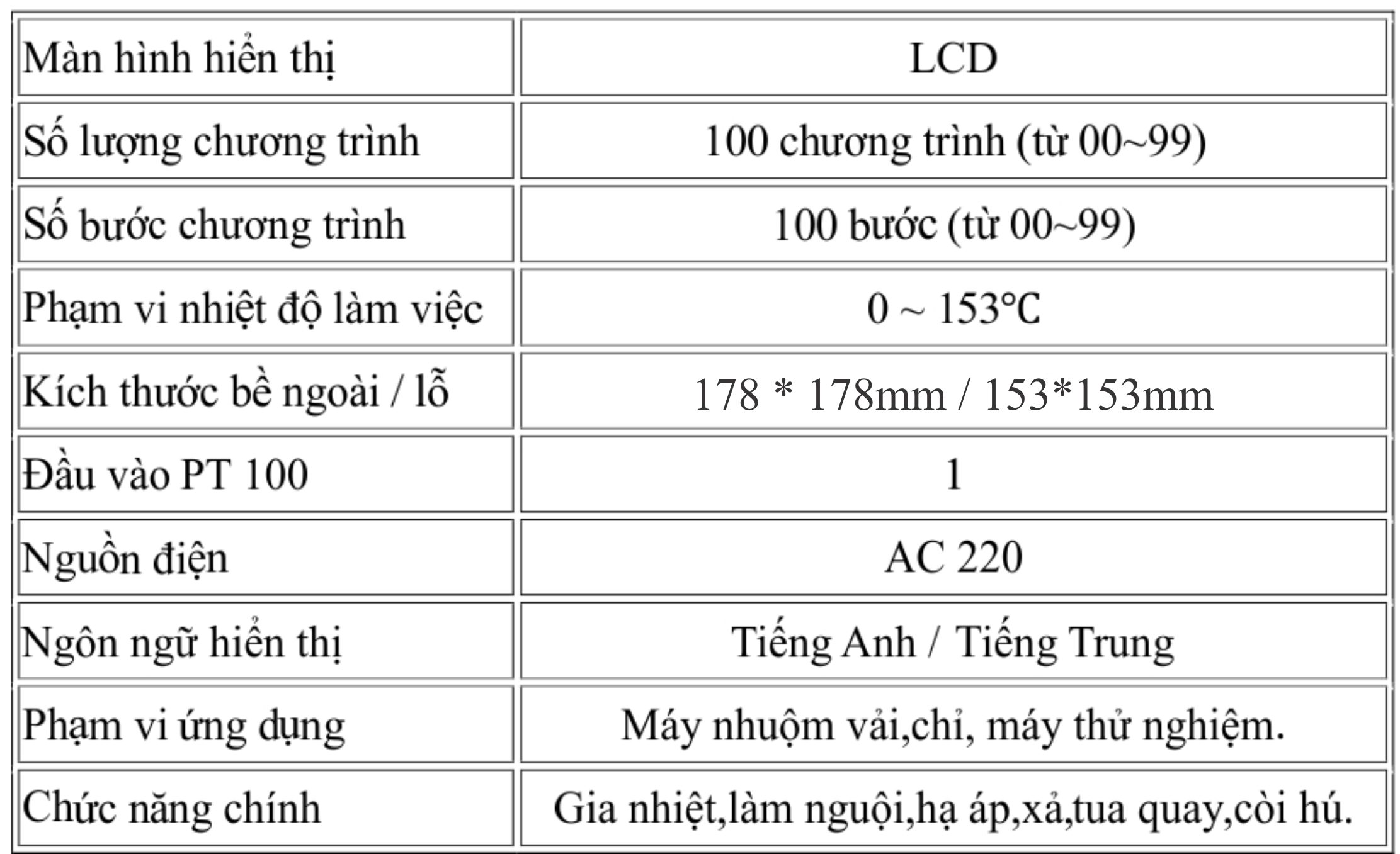 Phạm vi nhiệt độ : 0℃~153℃.